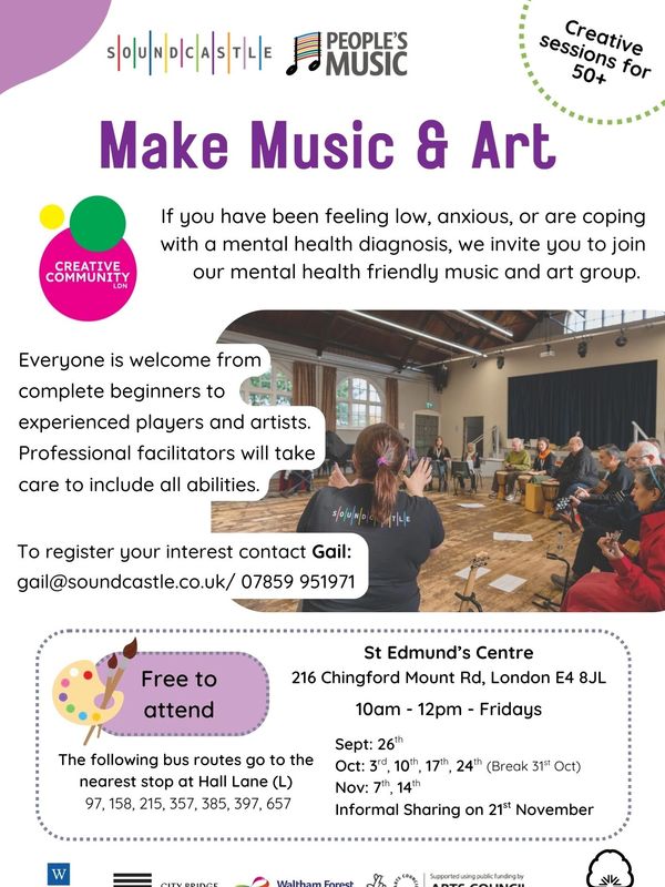 These inclusive sessions will combine music and art, for any level of ability. It is a chance to meet people in the community and enjoy free expression... maybe learn something new?